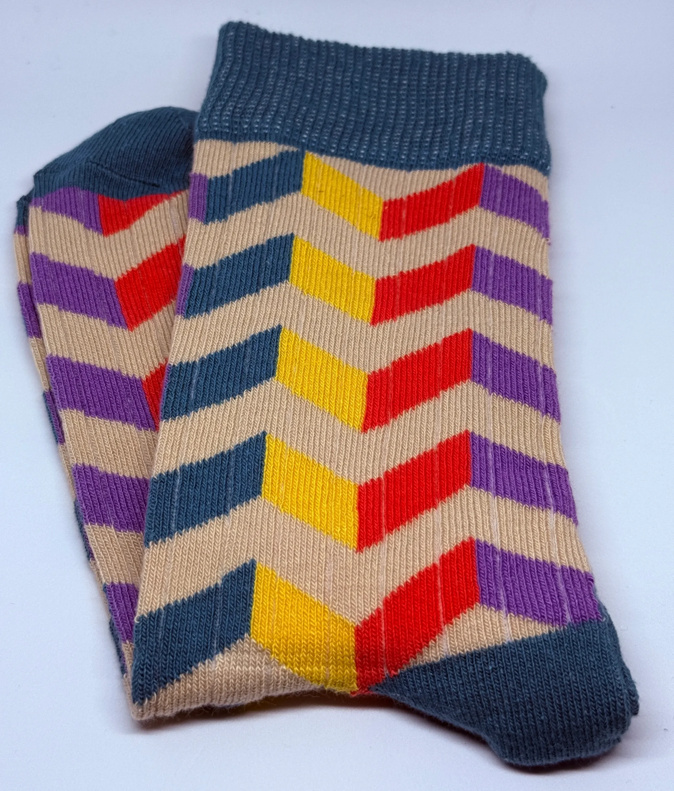 Sıradan çoraplardan sıkılanlar ve kombinine enerji katmak isteyenler için özel olarak tasarlanan bu geometrik desenli çoraplar, hem konforu hem de şıklığı bir araya getiriyor. Modern zigzag ve küp desenleriyle tasarlanan bu koleksiyon, stil sahibi her dolabın vazgeçilmezi olacak.