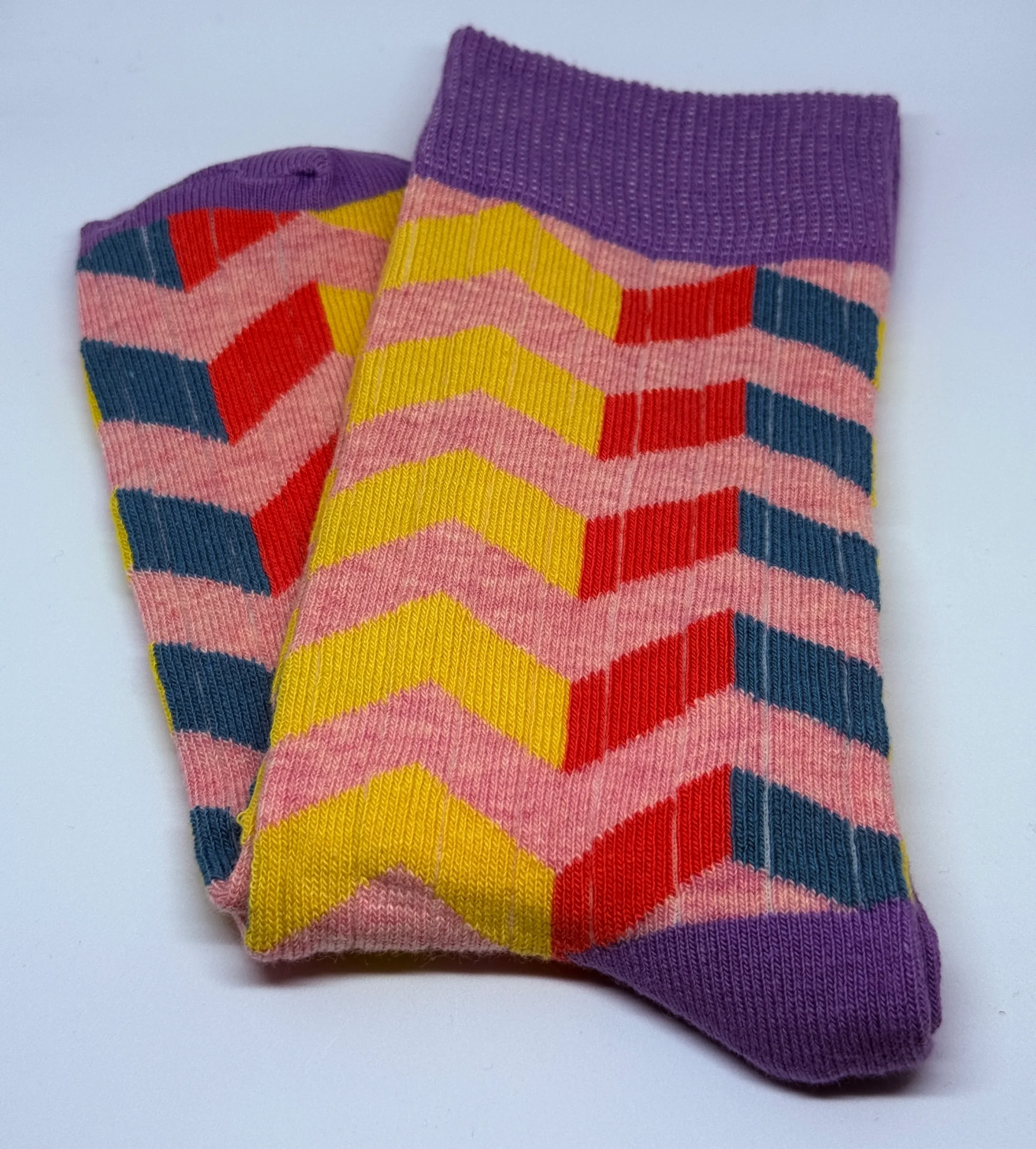 Retro Zigzag Desenli Pamuklu Tasarım Çoraplar